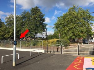 > lamppost near floor mural Chalon Way / Foundry St