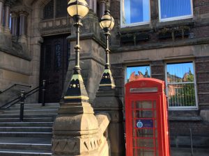 > phone Boxes outside the Town Hall