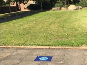 > floor marker outside the World of Glass